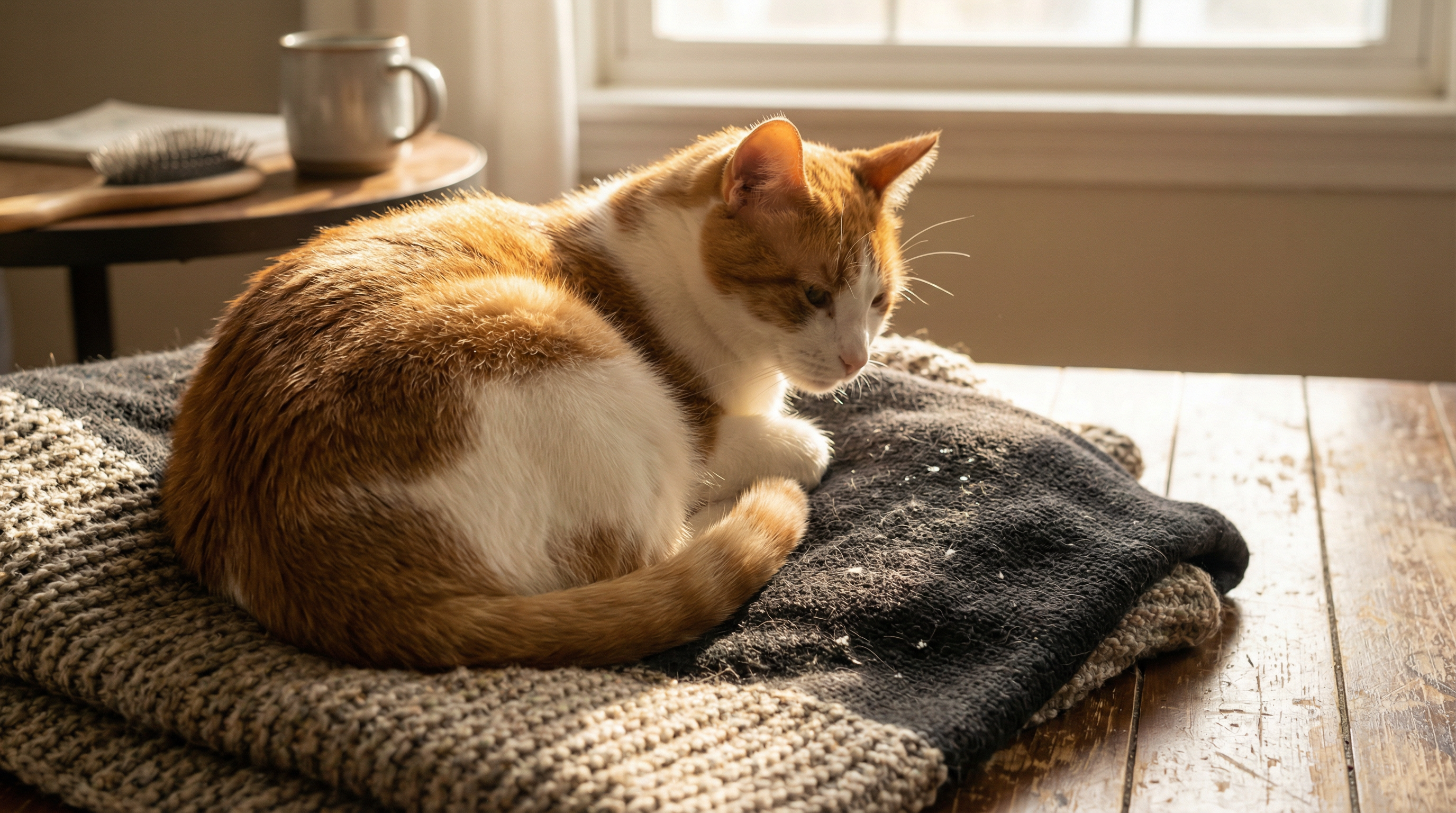 Cat dandruff is the flaking and shedding of dead skin cells, visible as white or gray specks in your cat's coat, on their skin, or scattered on bedding and furniture. It's different from normal shedding because it indicates your cat's skin barrier is compromised, either from dryness, irritation, or an underlying health issue. While occasional flaking is normal, persistent dandruff means something needs to change.