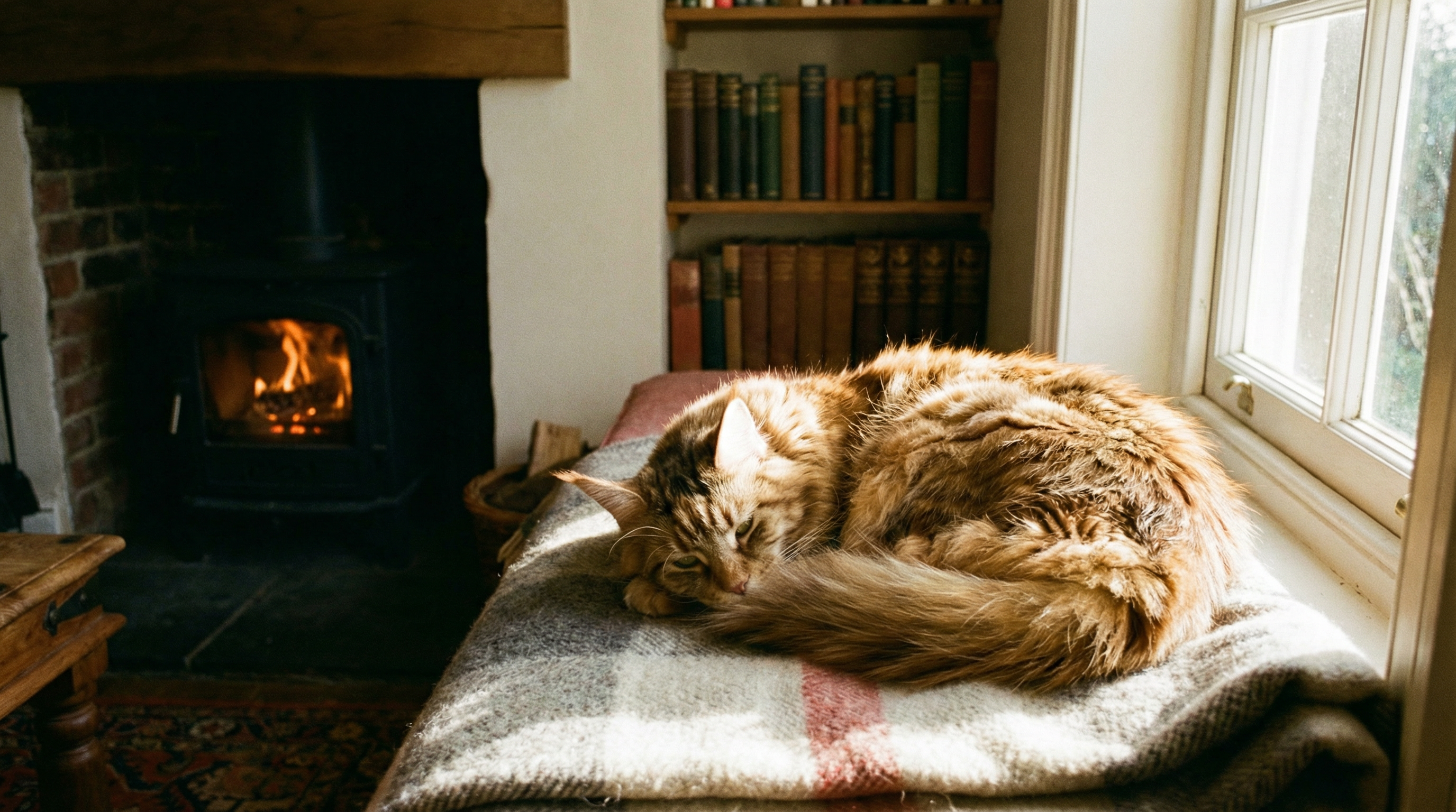 Maine Coons are instantly recognizable by their large, muscular bodies, which can weigh between 10 and 25 pounds depending on sex and individual genetics. Their most iconic features include a long, bushy, plumed tail; tufted ears; a strong jaw; and a rectangular body shape. The breed's water-resistant double coat, which comes in nearly every color and pattern, originally helped these cats survive harsh New England winters.